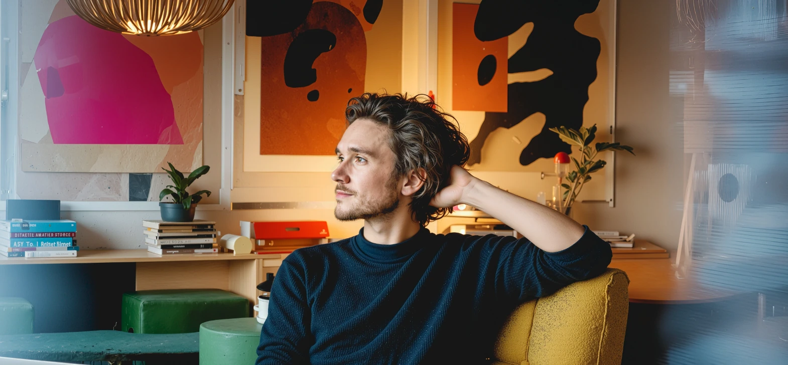 Separate living, working and sleeping zones Queen-size bed with premium textiles and bold décor accents Ergonomic work corner with ambient, adjustable lighting Smart-tech controls through a central tablet Wireless charging and intuitive touch interfaces Compact kitchenette with essentials and coffee setup Open wardrobe with integrated lighting and storage Art-driven decorative elements inspired by global culture Sound-optimized walls for comfort and focus Mood-adaptive lighting for relaxation or creativity Yoga mat for personal wellness routines High-speed Wi-Fi and smart TV Eco-conscious materials and design details